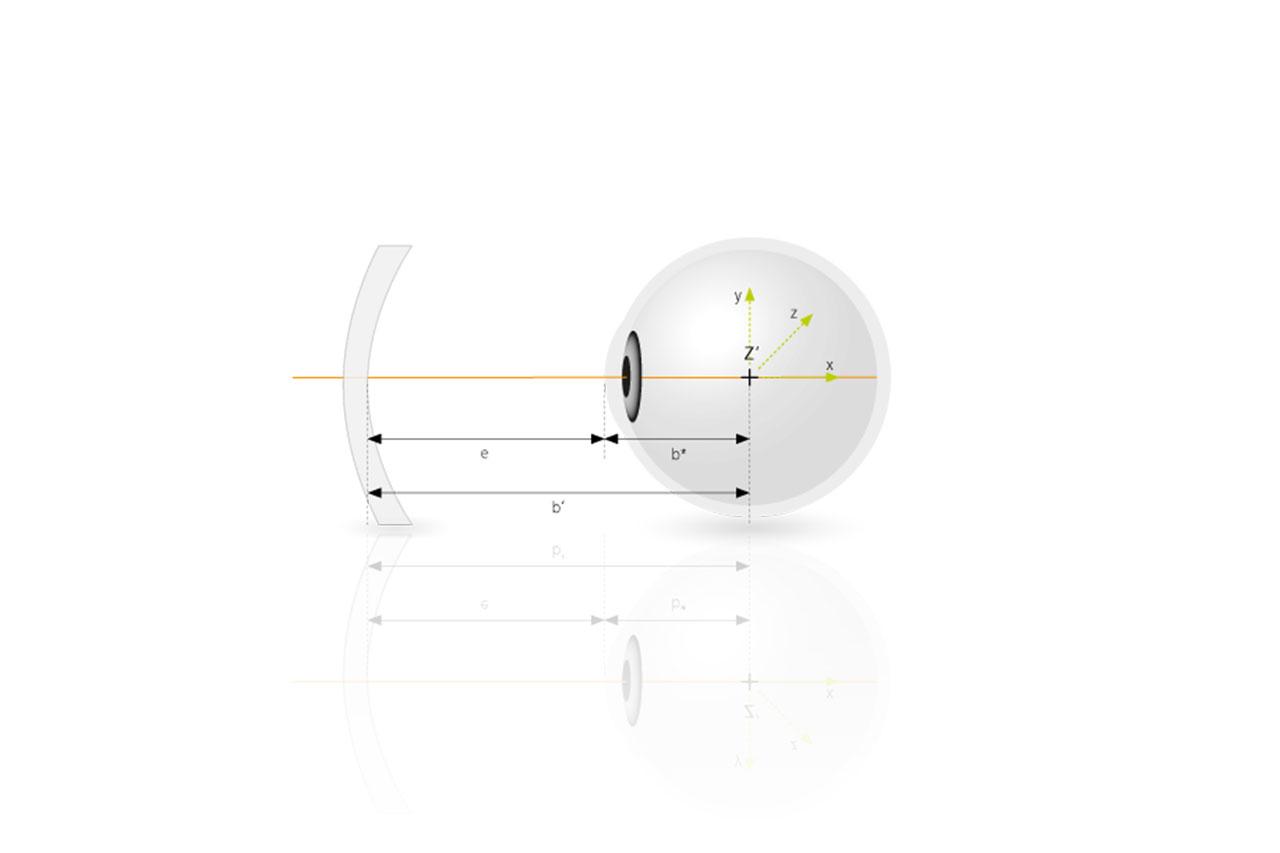 Son muchos los parámetros individuales y puntos de medición importantes a la hora de ajustar las lentes a una montura de gafas. Determinan lo natural que será la visión del usuario y lo rápido que este se podrá adaptar a sus nuevas lentes. Entre estos parámetros se encuentran, por ejemplo, la distancia al vértice corneal, la distancia interpupilar, la altura de visión, la inclinación de las lentes en la montura y la curvatura de la montura. No obstante, hay un punto en el ojo que el óptico no mide directamente. El centro de rotación del ojo es otro parámetro que se tiene en cuenta en la producción de lentes de precisión de ZEISS.