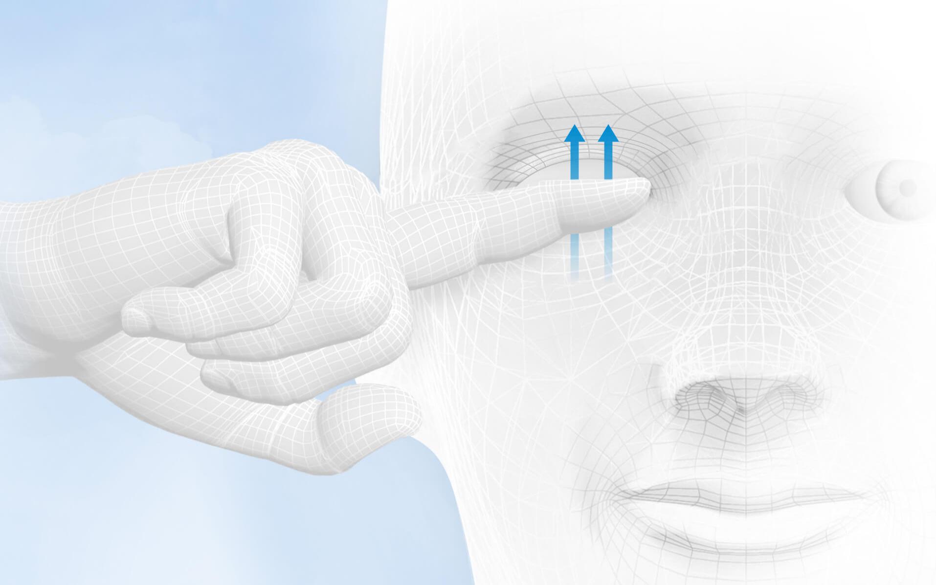 2. Después, es momento del masaje de párpados: movimientos suaves ayudarán a liberar la secreción de los conductos de las glándulas de Meibomio. Cierre los ojos. Con cuidado, acompañe con los dedos el párpado superior de arriba hacia abajo y de abajo hacia arriba, hasta el punto donde los párpados se encuentran. Repítalo varias veces. Por último, masajee los párpados moviéndolos hacia adentro, en dirección a la nariz.